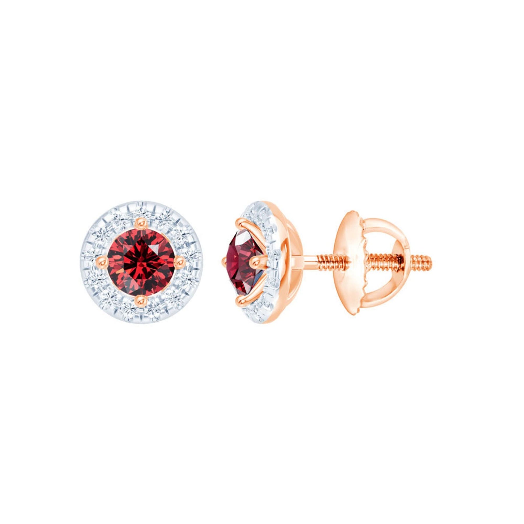 Auksiniai auskarai - smeigtukai su rubinu centre ir papildoma, baltais deimantais puošta, nuimama detale. Viena pora auskarų - du skirtingi įvaizdžiai.