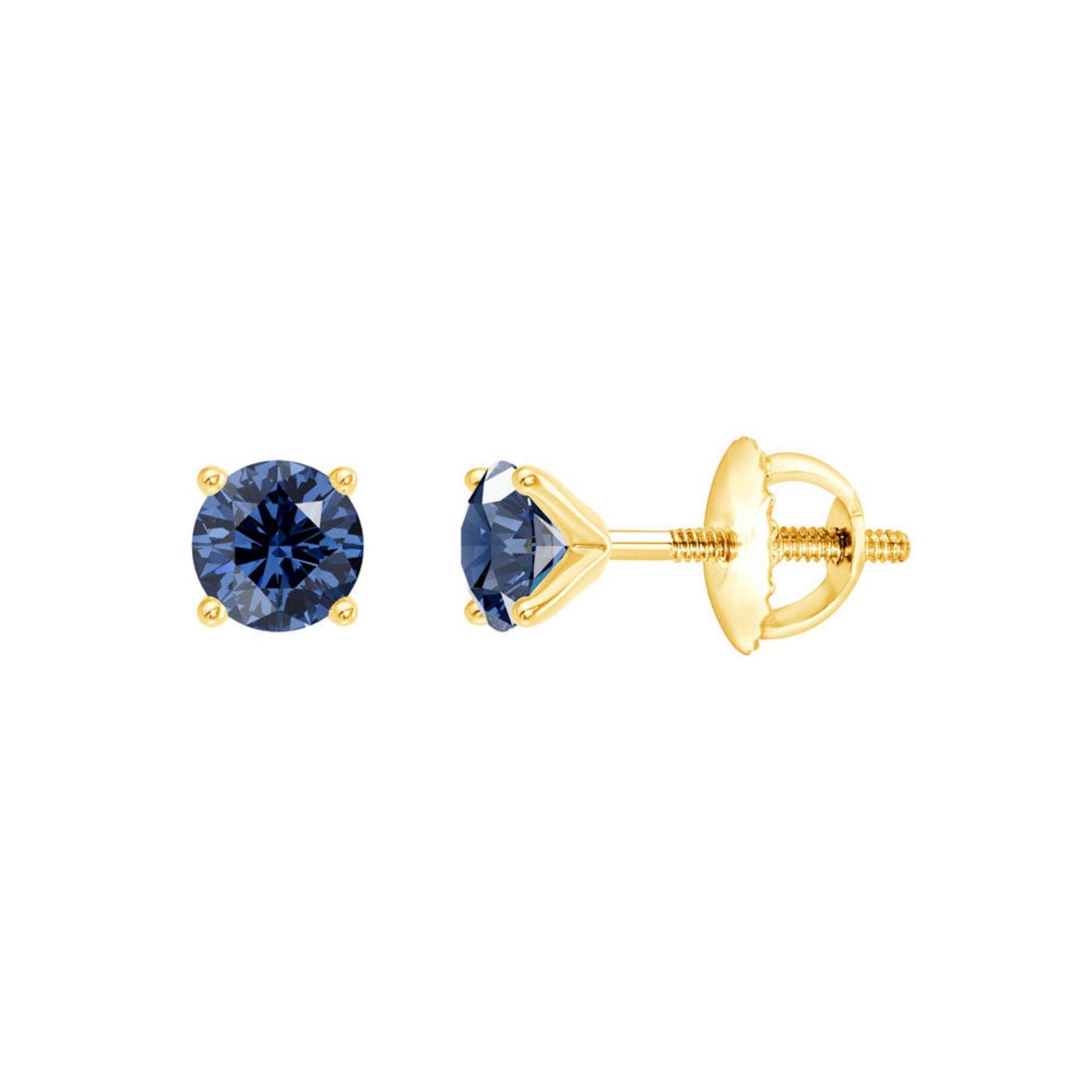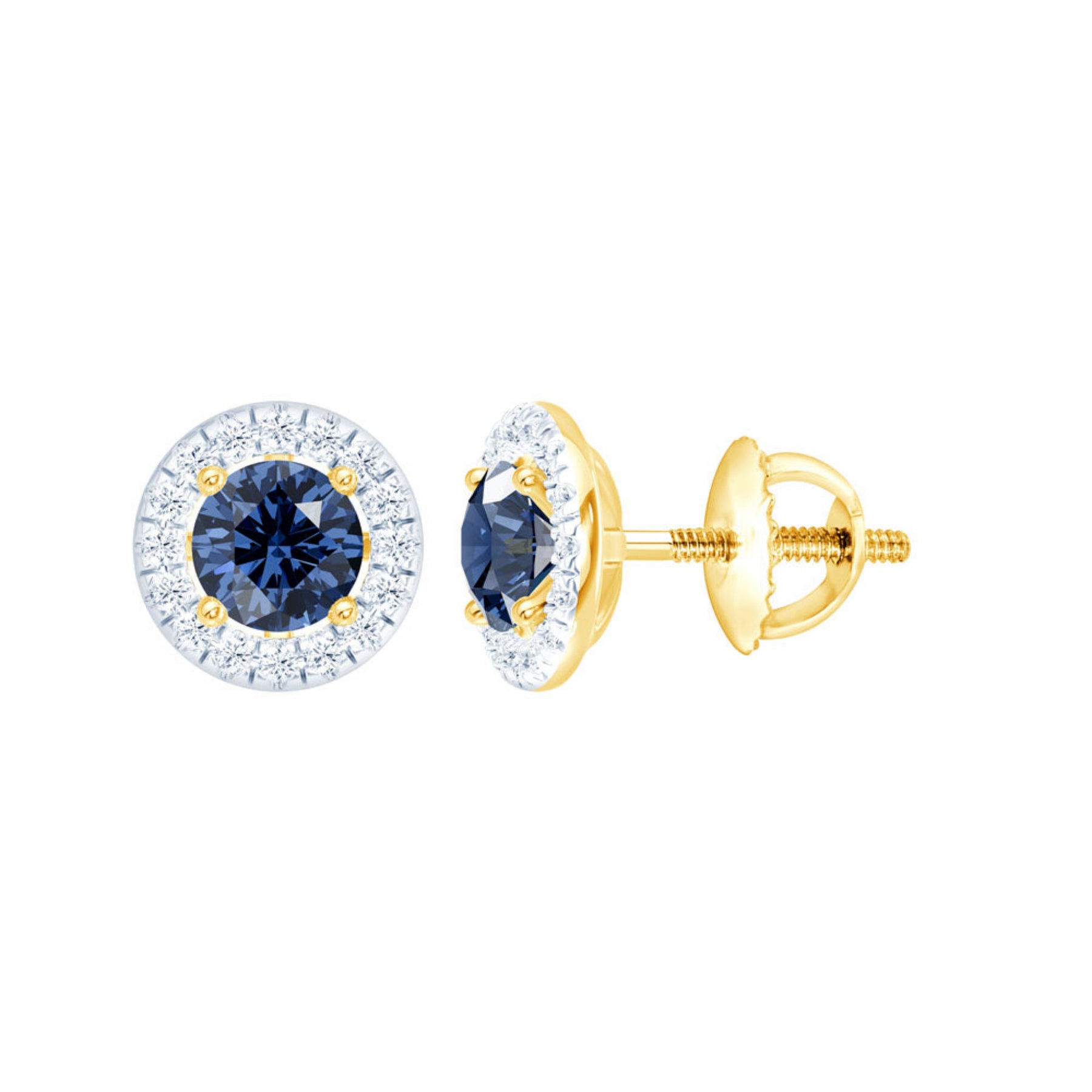 Auksiniai auskarai - smeigtukai su safyru centre ir papildoma, baltais deimantais puošta, nuimama detale. Viena pora auskarų - du skirtingi įvaizdžiai.