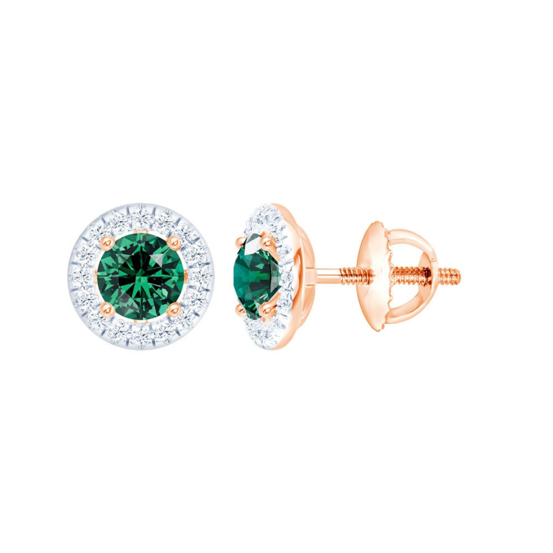 Auksiniai auskarai - smeigtukai su smaragdu centre ir papildoma, baltais deimantais puošta, nuimama detale. Viena pora auskarų - du skirtingi įvaizdžiai.