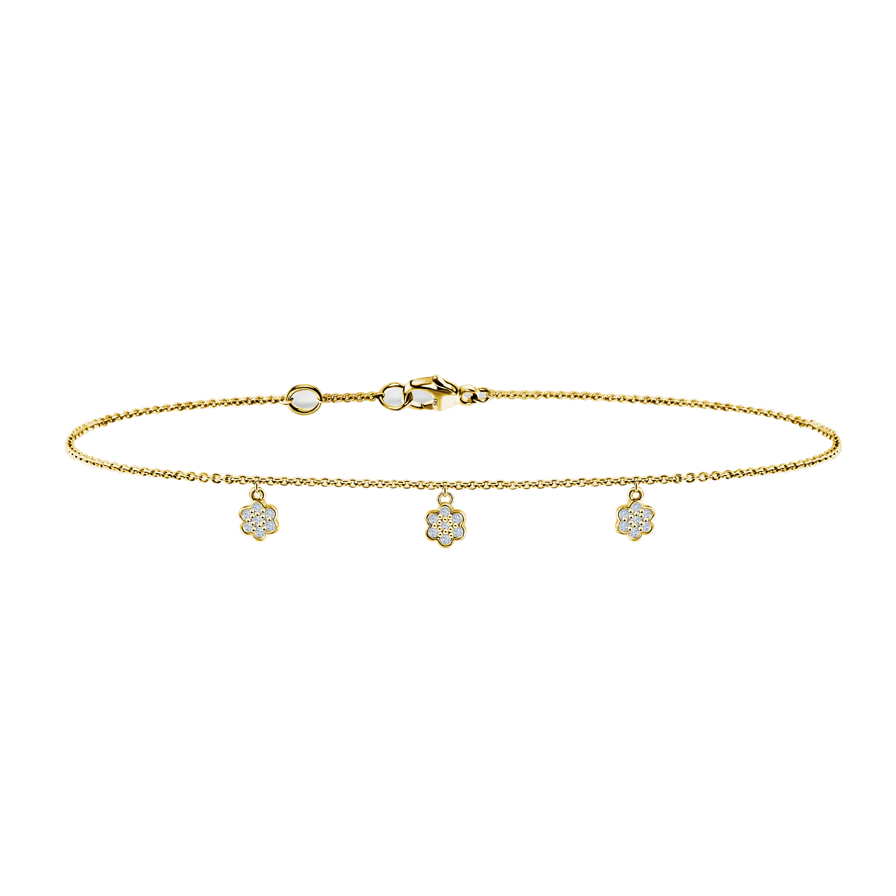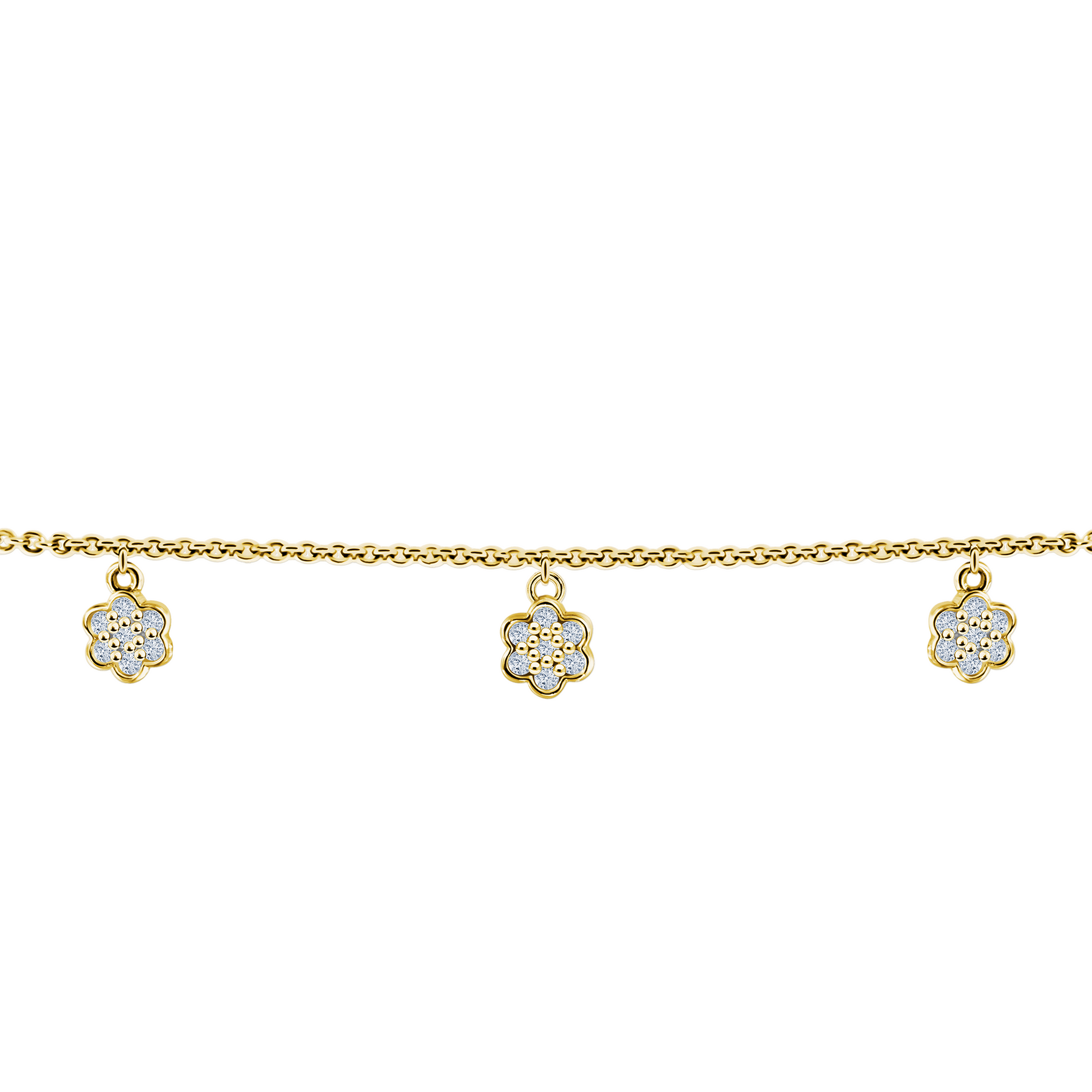 Geltono aukso apyrankė - grandinėlė su deimantais