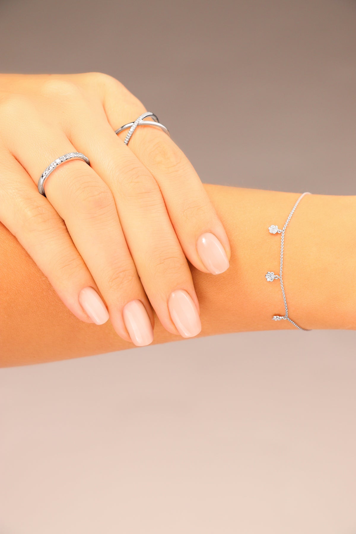Auksinė apyrankė - grandinėlė su deimantiniais pakabukais.