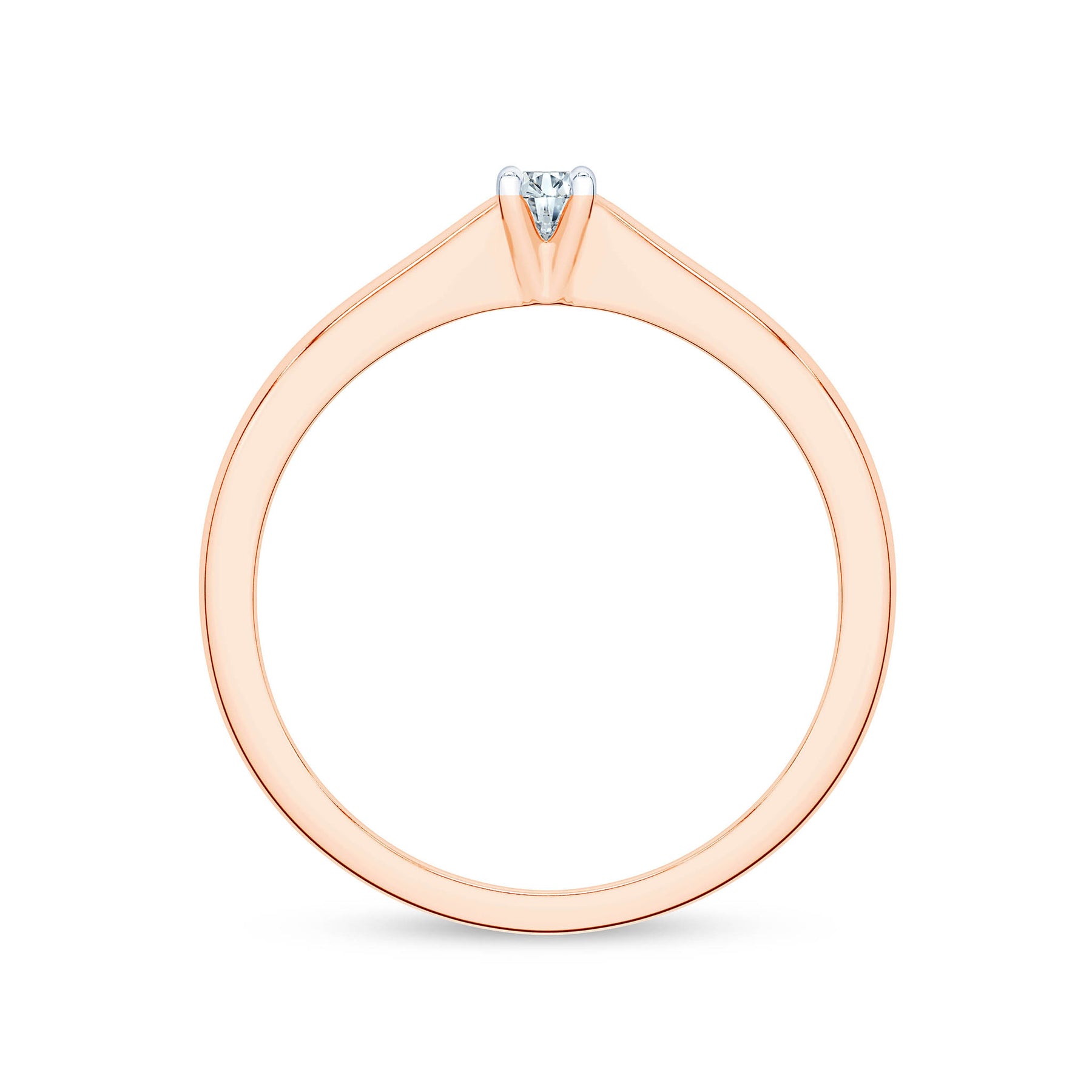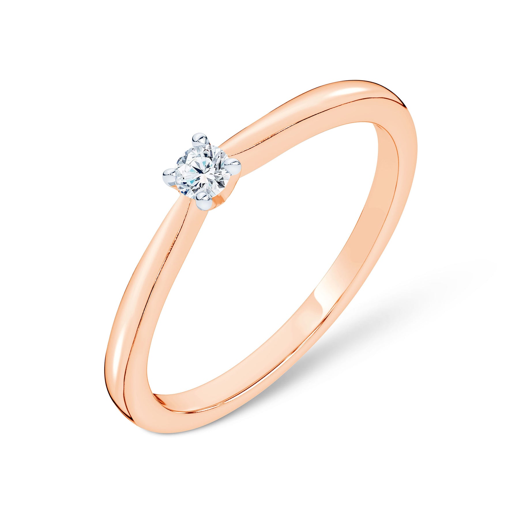 Raudono aukso žiedas su deimantu. Klasikinis dizainas ir subtili prabanga, kurią išryškina deimanto spindesys.
