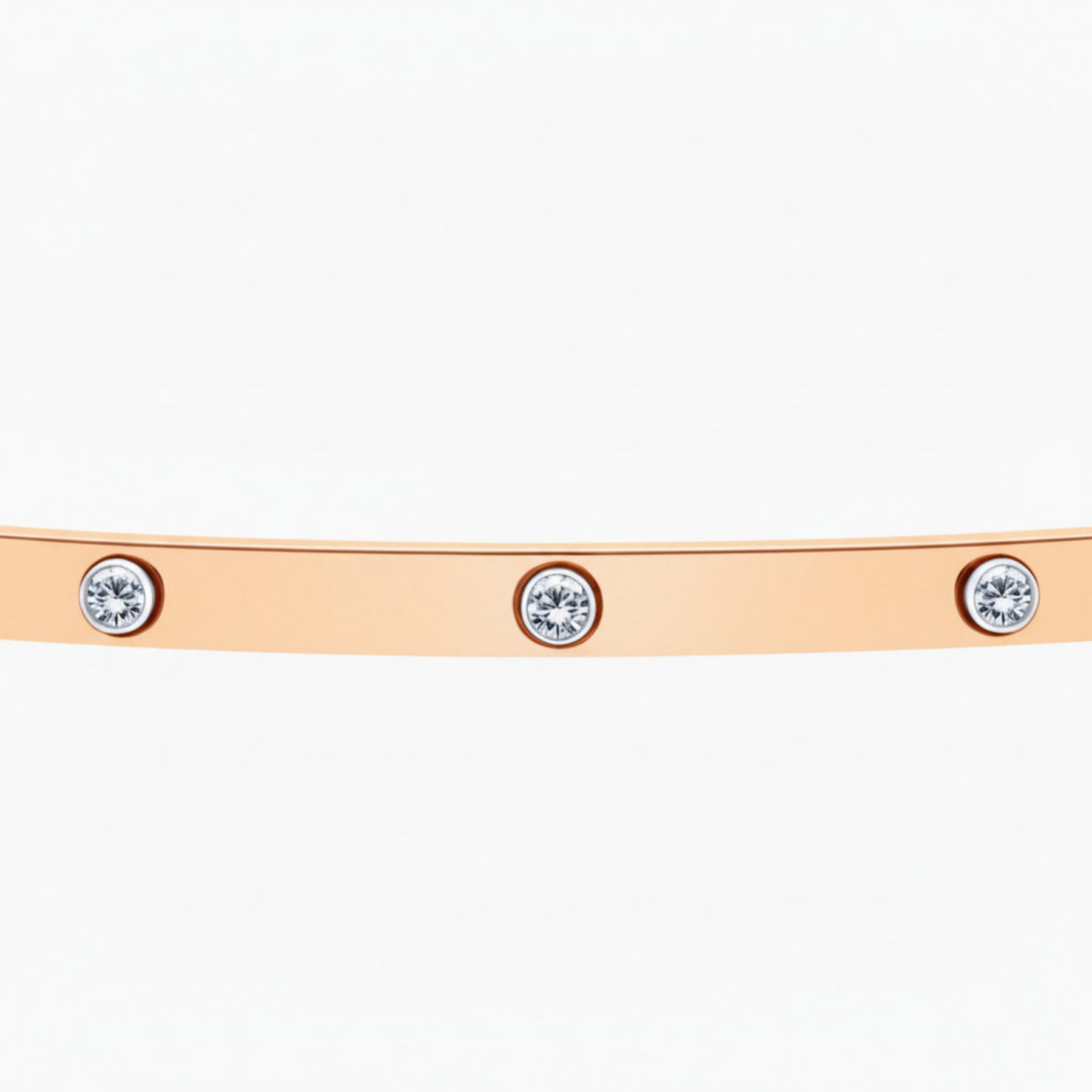 Auksinė, standi apyrankė su deimantais.
