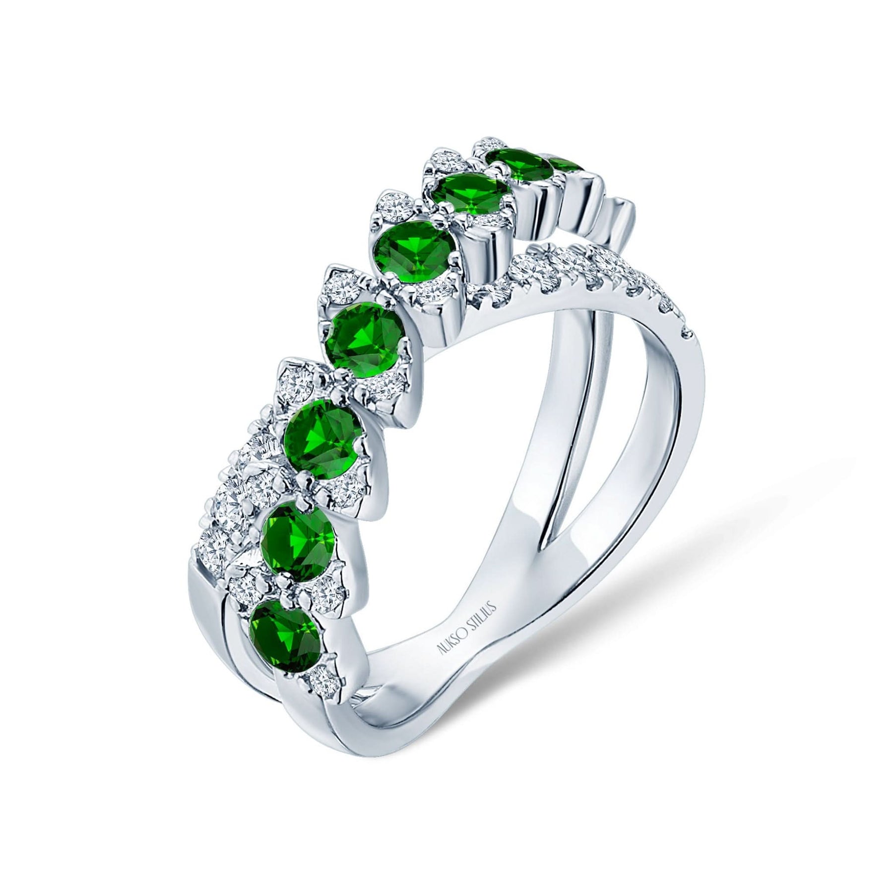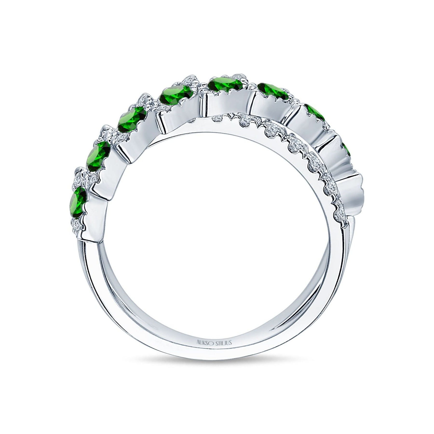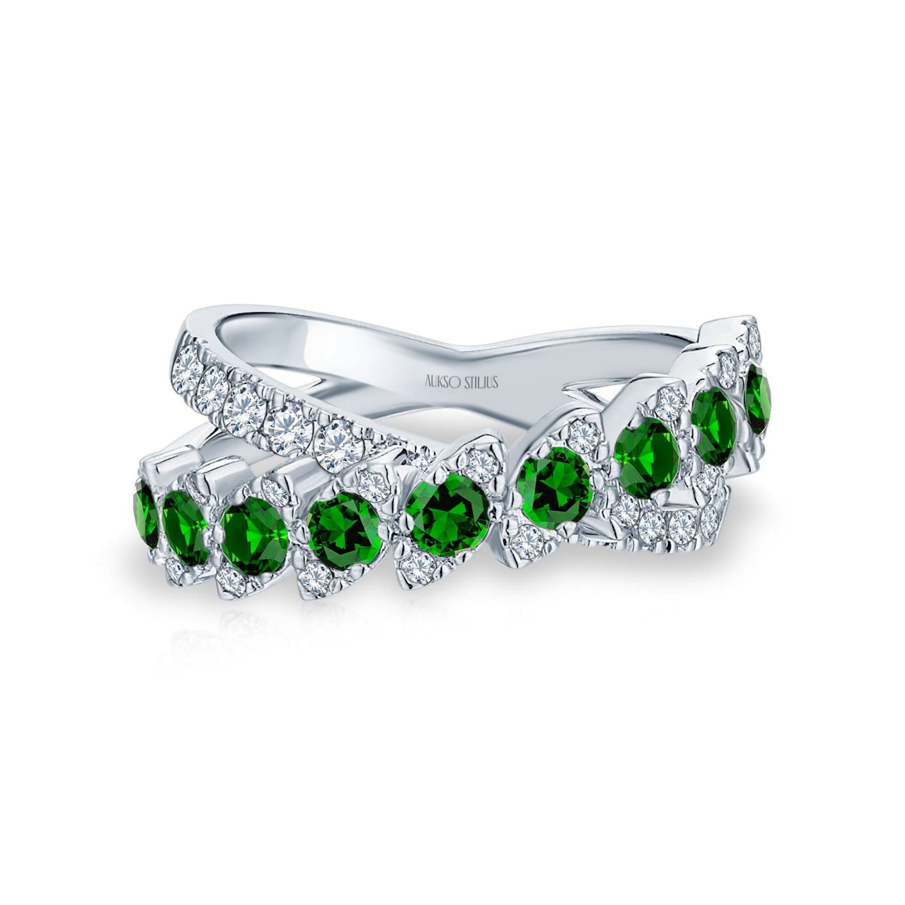 Prabangus auksinis žiedas su natūraliais, baltais deimantais ir sodriais smaragdais iš kolekcijos „Exclusive“.