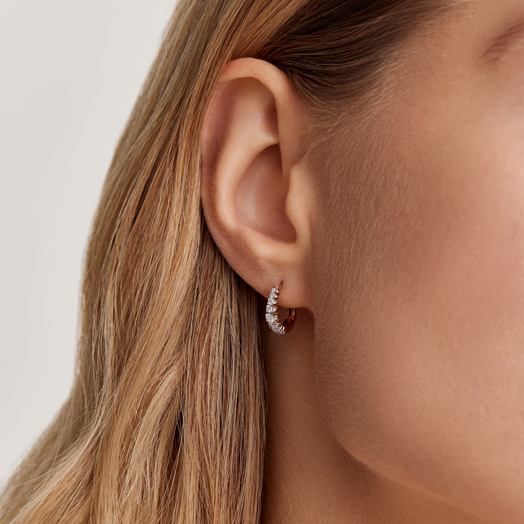 Auksiniai auskarai su deimantais iš kolekcijos „Forever“. Dizainas, kuris puikiai tinka tiek kasdieniams, tiek prabangiems įvaizdžiams, traukiantis dėmesį savo subtilumu ir elegancija.