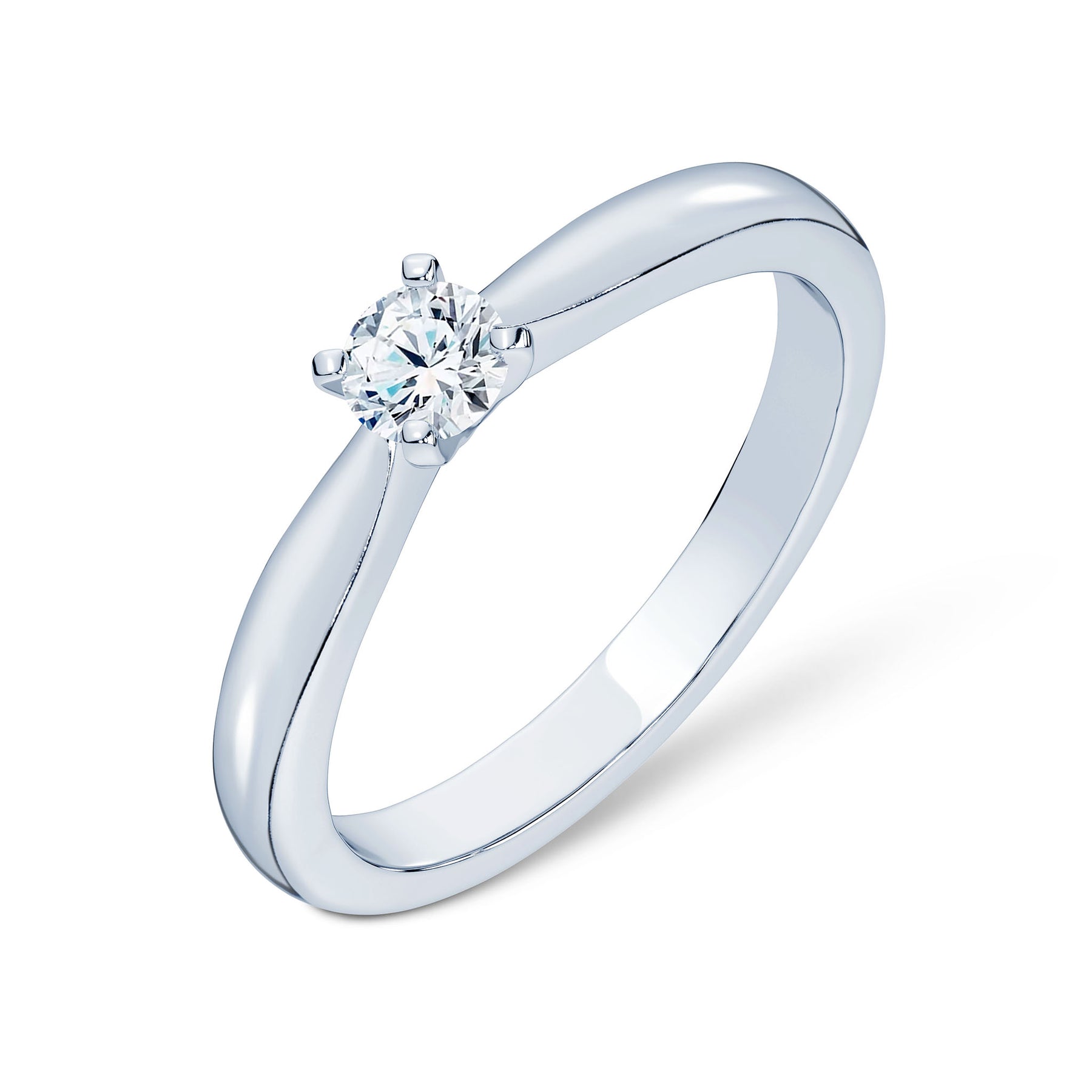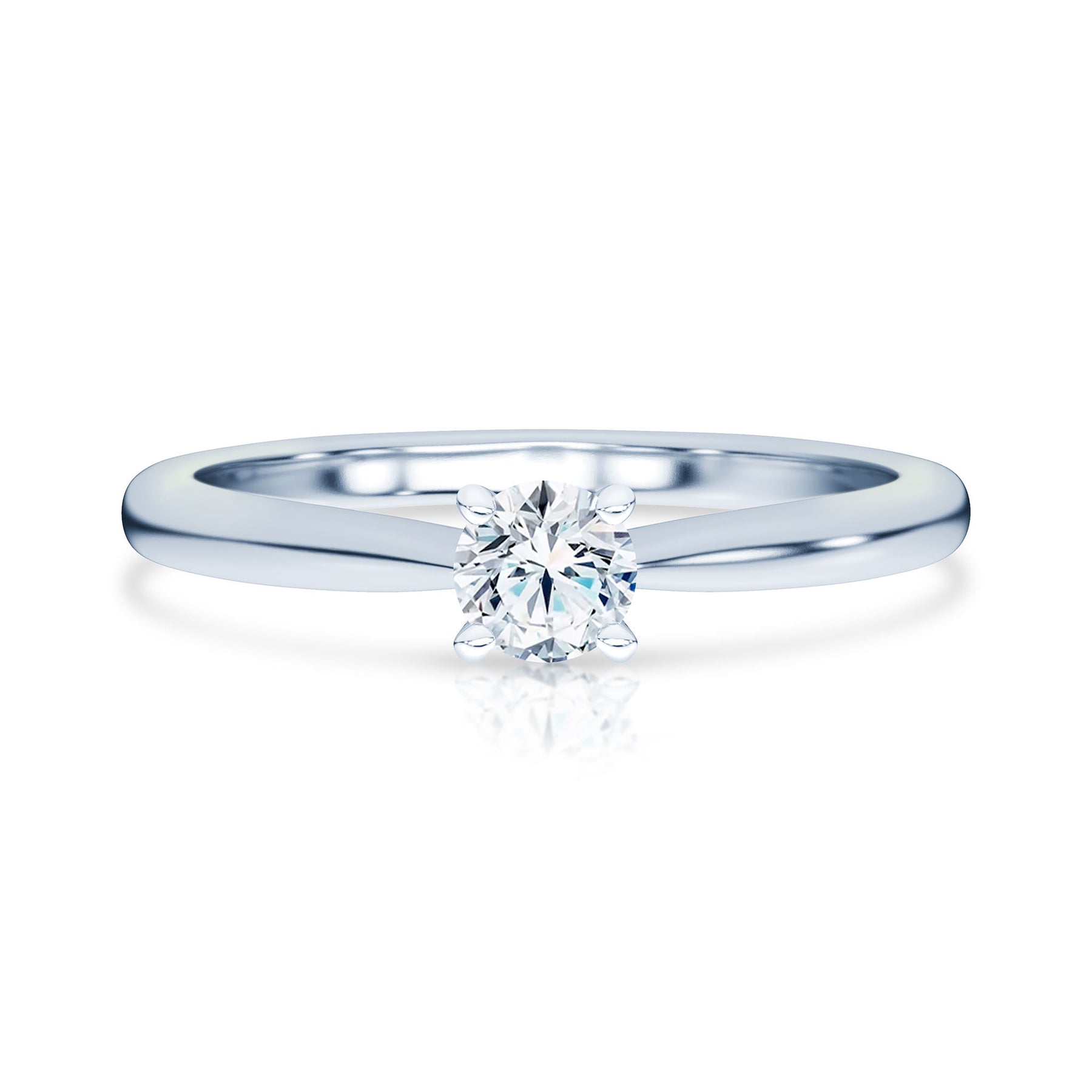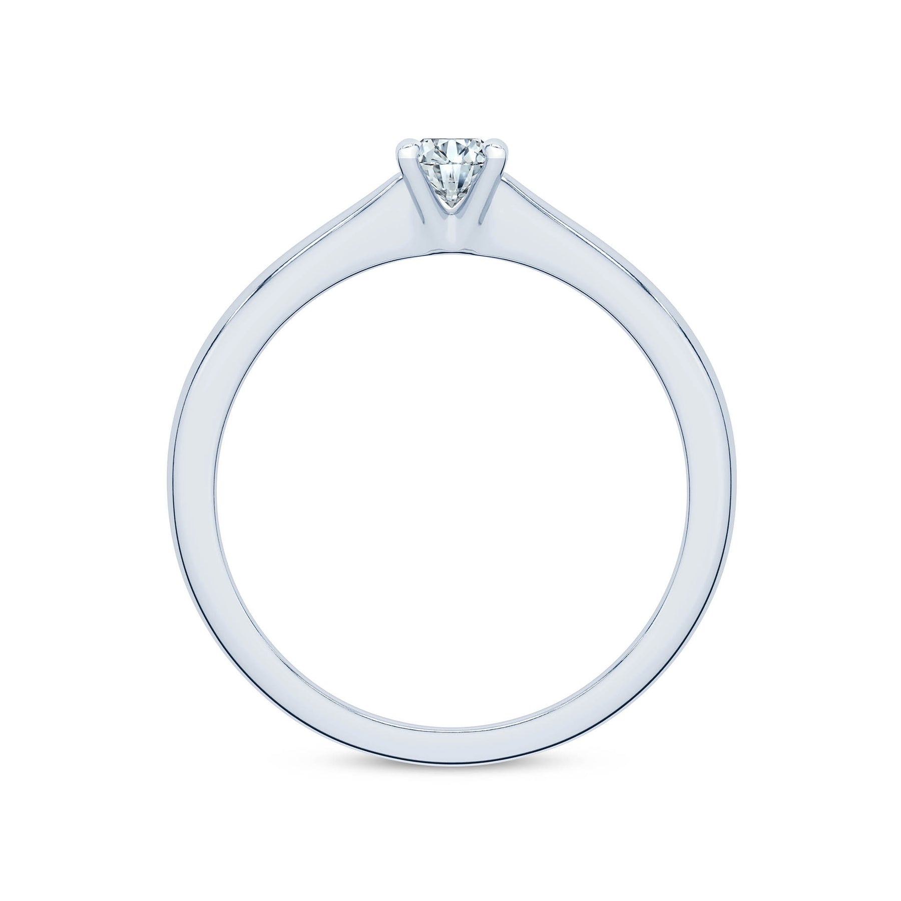 Balto aukso žiedas su deimantu. Klasikinis dizainas ir subtili prabanga, kurią išryškina deimanto spindesys.