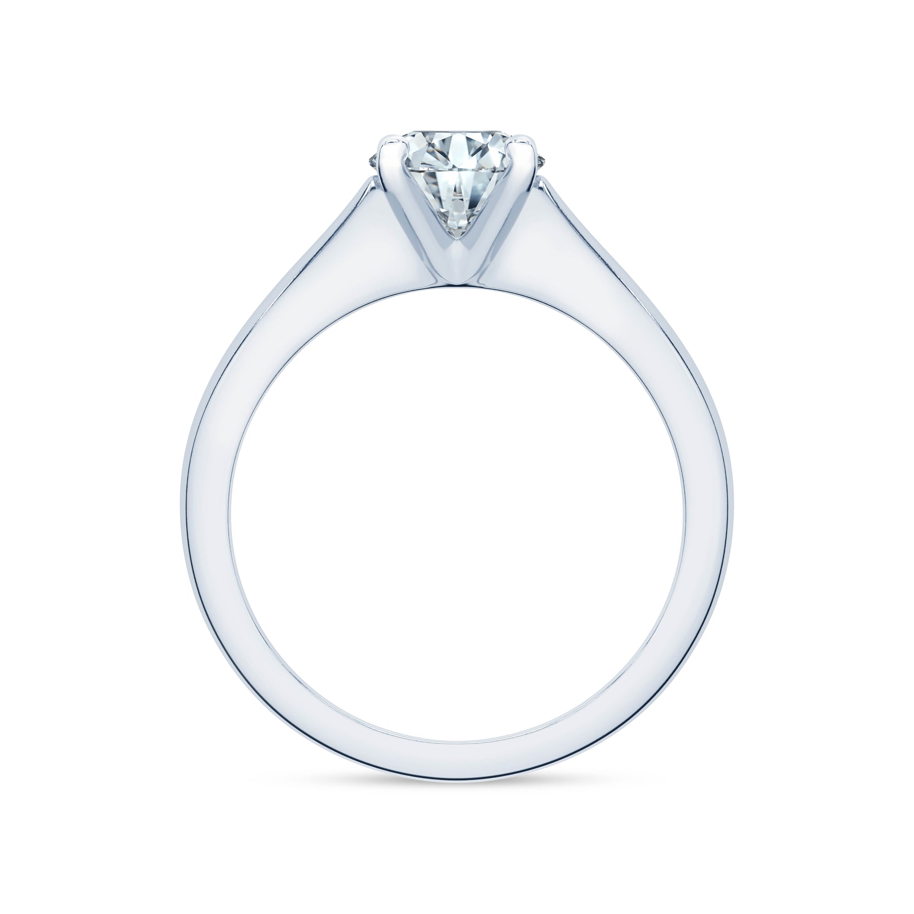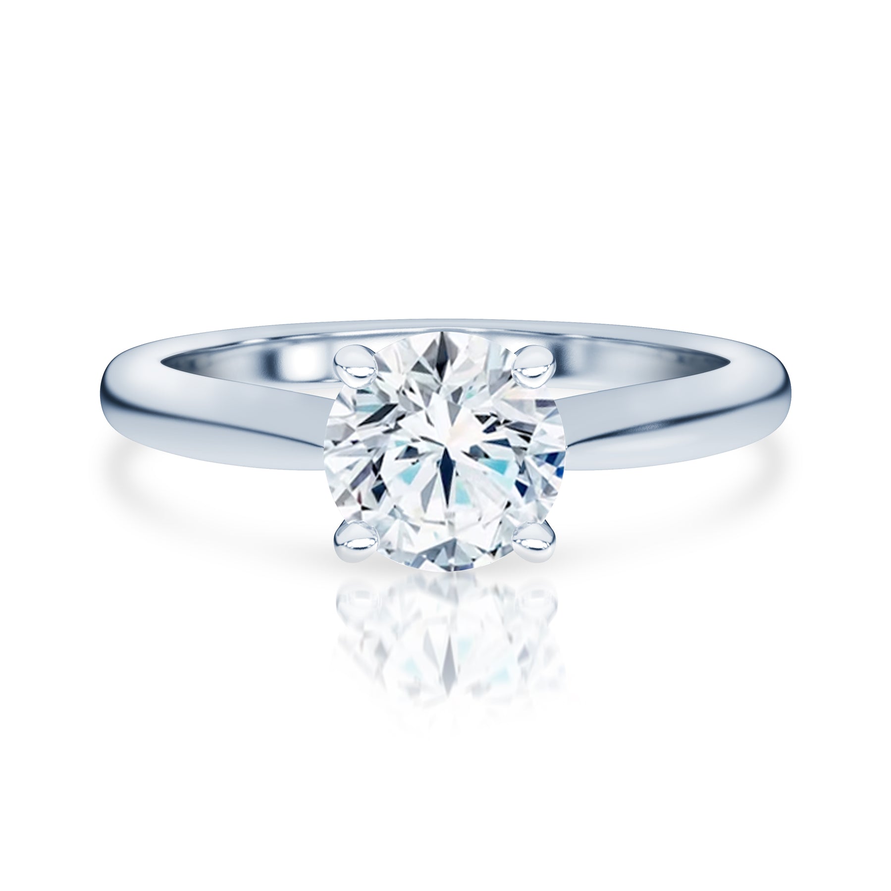 Balto aukso žiedas su deimantu. Klasikinis dizainas ir subtili prabanga, kurią išryškina deimanto spindesys.