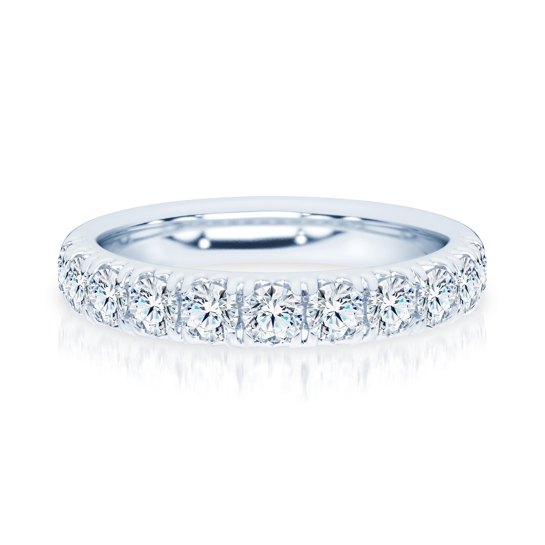 Balto aukso žiedas - juostelė su deimantais iš kolekcijos „Melody“ – akcentas, spinduliuojantis meilę ir prabangą.