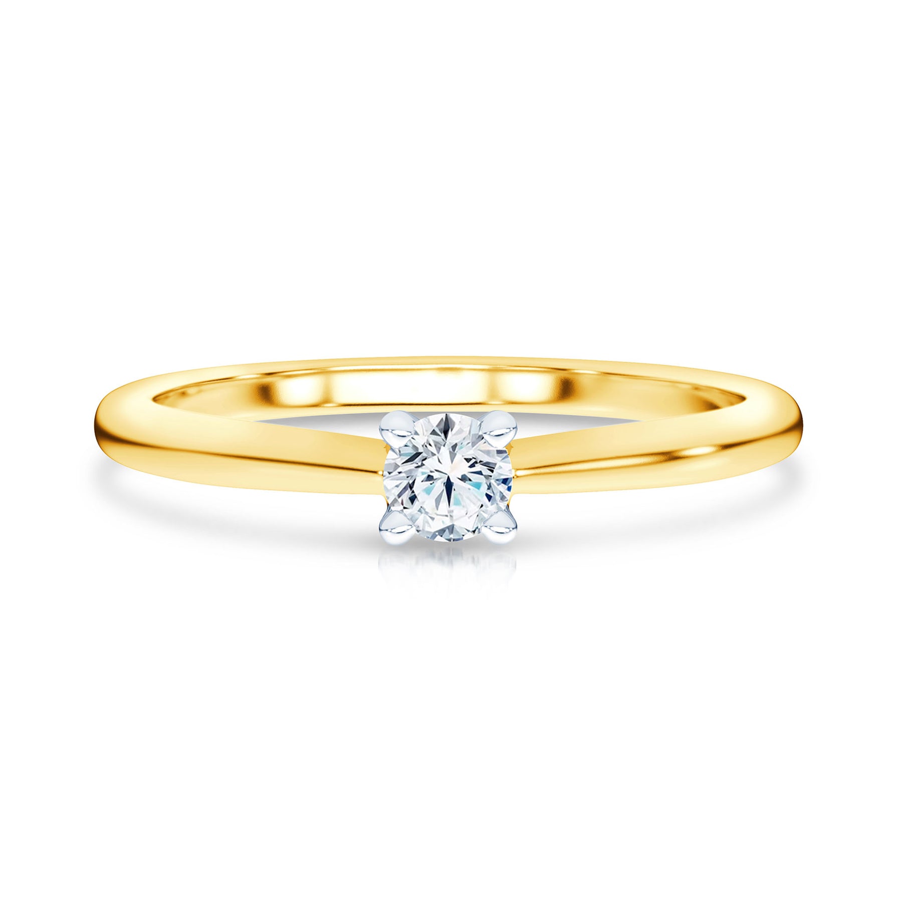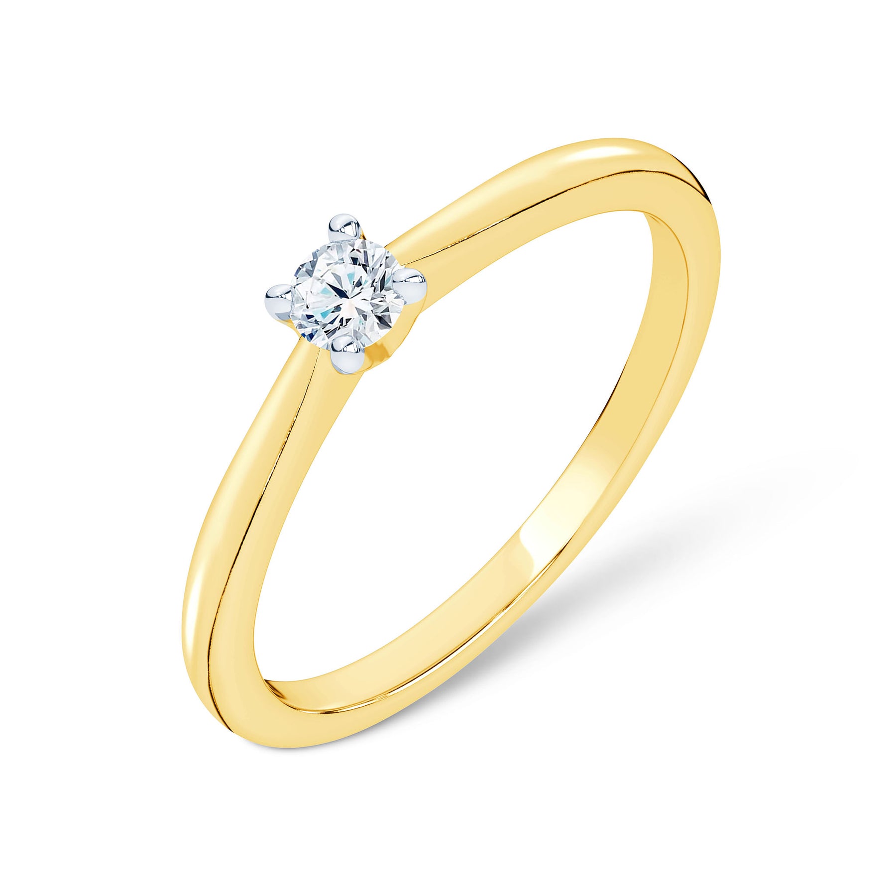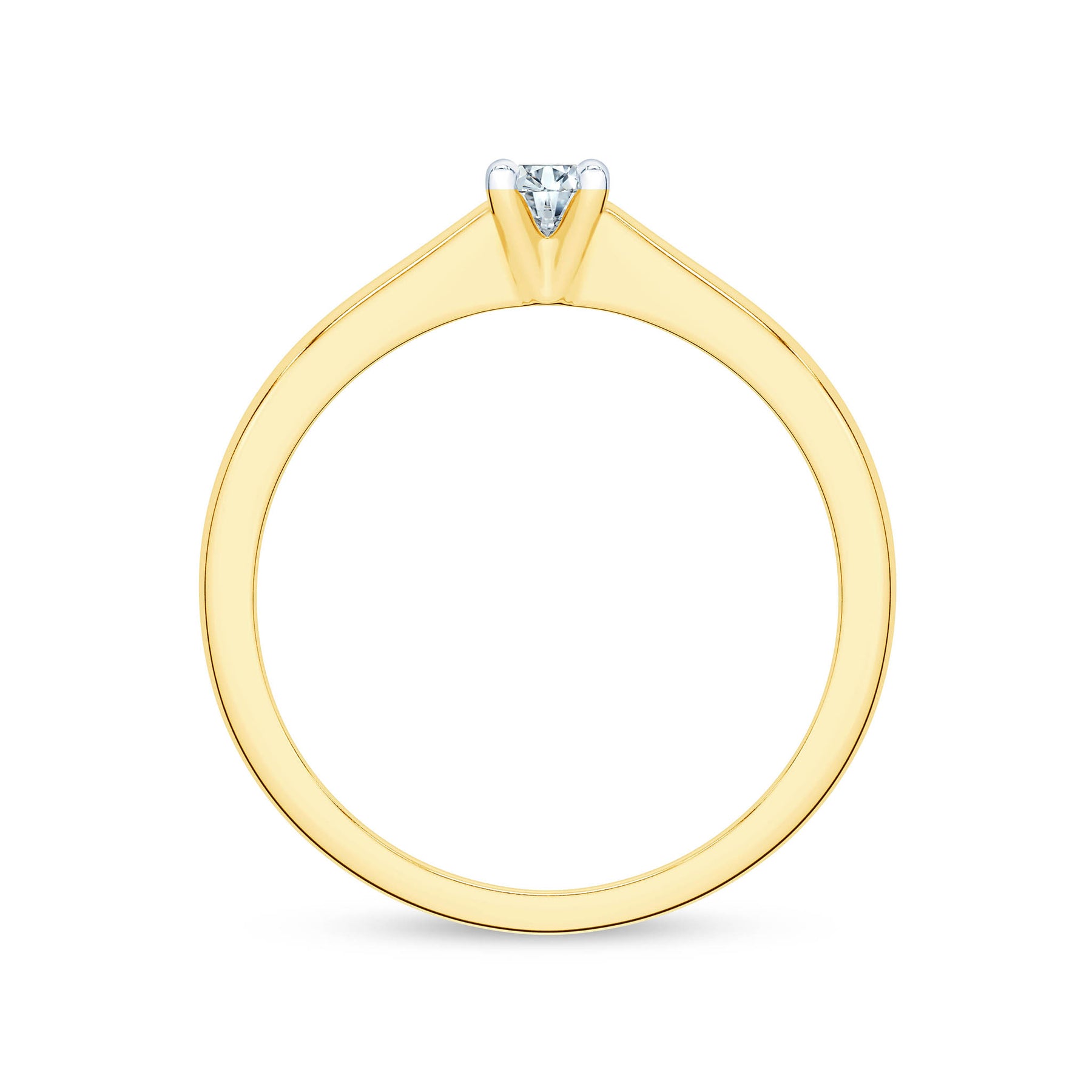 Geltono aukso žiedas su deimantu. Klasikinis dizainas ir subtili prabanga, kurią išryškina deimanto spindesys.