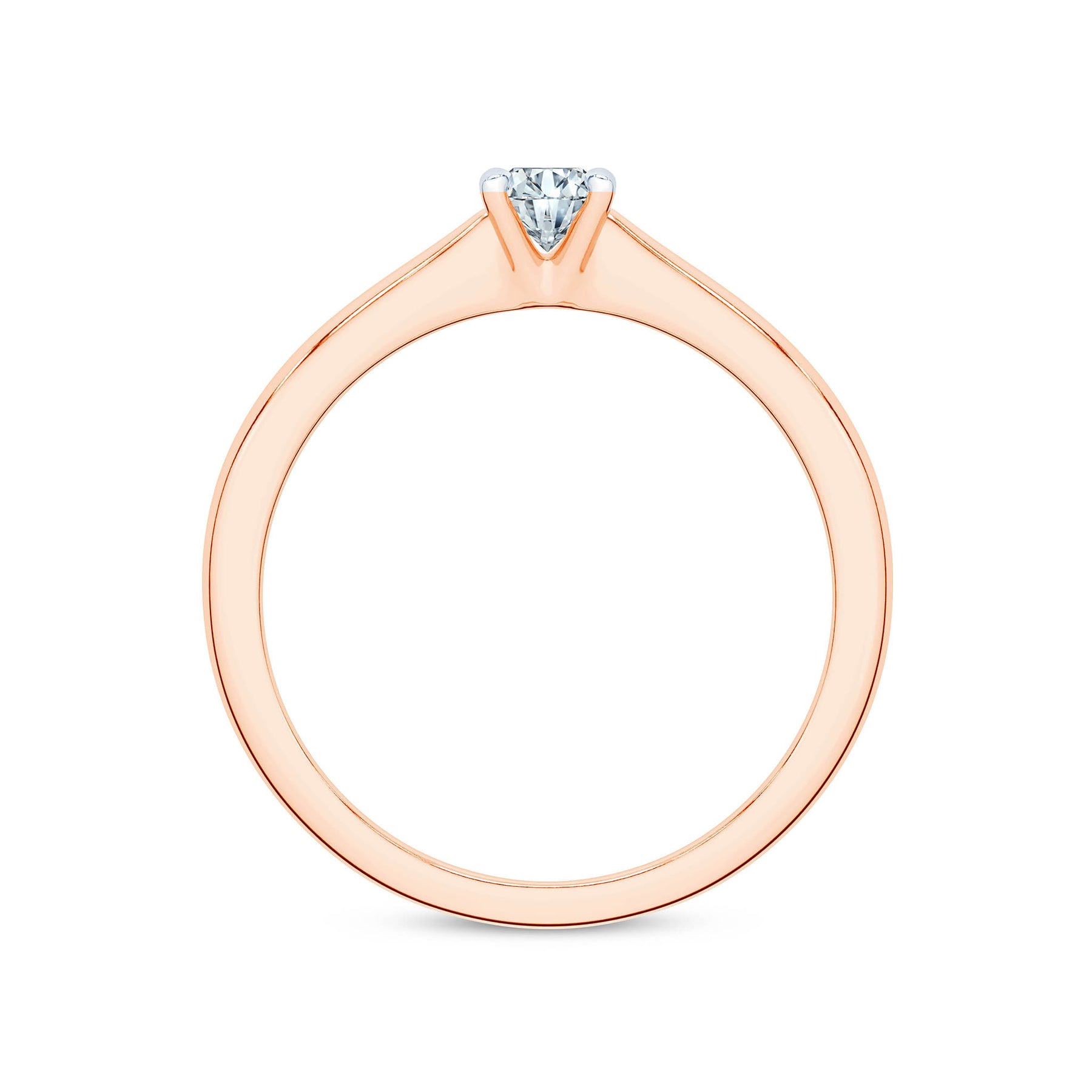 Raudono aukso žiedas su deimantu. Klasikinis dizainas ir subtili prabanga, kurią išryškina deimanto spindesys.